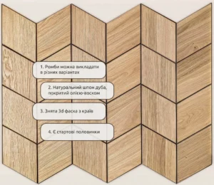 Деревʼяна плитка RHOMBUS – Дуб Natural