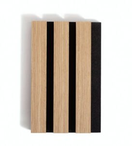 Чудовий вигляд натурального дерева – рейки вироблені зі шпону дуба та покриті масло-воском. Основа панелі – акустичний войлок.