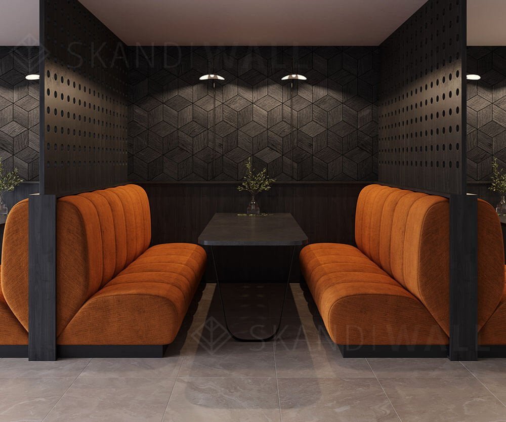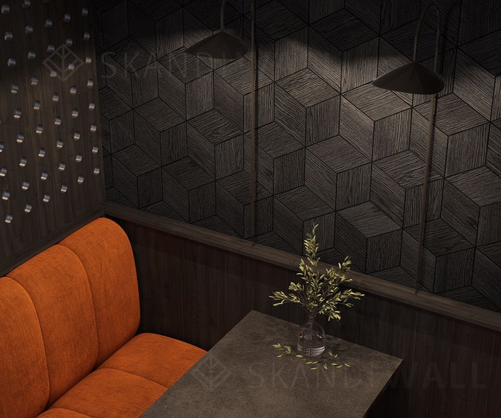 Деревянная плитка Rhombus создает элегантную геометрическую композицию из ромбов. Ромбы произведены из натурального шпона дуба, покрытого маслом-воском, чтобы подчеркнуть красоту дерева. Преимущество плитки Rhombus в том, что ее можно выкладывать в различных вариациях, кардинально меняя композицию и общий вид на стене.
